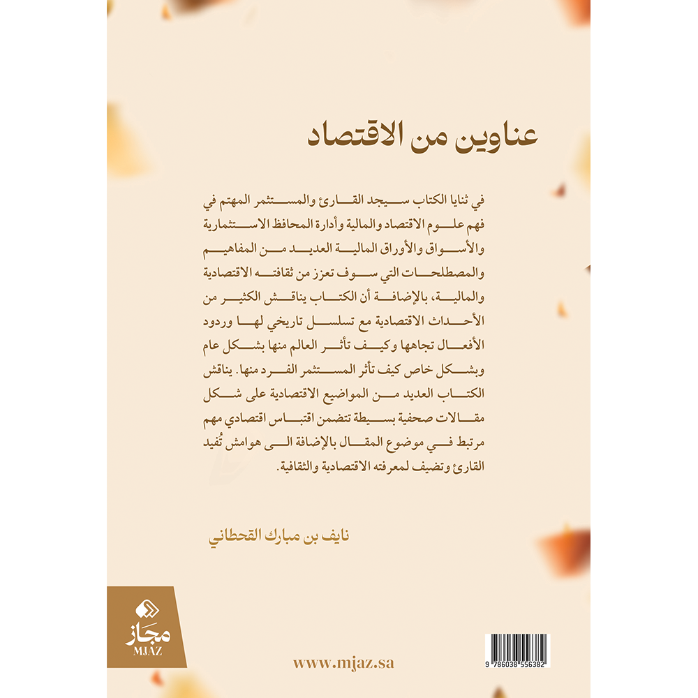 - الوسوم: دار مجاز للنشر والتوزيع, 9786038556382, اقتصاد, نايف مبارك القحطاني, عناوين من الاقتصاد