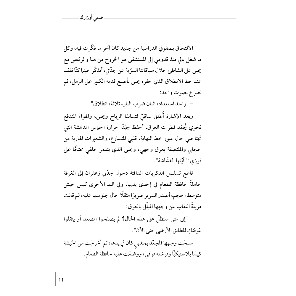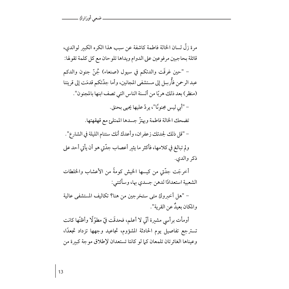 مياسم ذات الثمانية عشر ربيعًا هوَت الركض فسلبَتها الحرب الدائرة في اليمن قدميها والكثير من أصدقائها، فتُرغَم هي وأخيها يحيى والجدة زعفران على ترك محافظة الحوك والنزوح من مكان إلى آخر هربًا من الحرب، وبحثًا عن الحقيقة خلف جنون والدها عبد الرحمن، الرجل الذي فقد زوجته في ظروفٍ غامضة، وسُجِن كمريضٍ نفسي بسبب والدته المتسلّطة، أكان الحب جريمته؟ أم هناك سبب آخر؟ الحقيقة تختبئ في صنعاء فقط.. مدينة كلّ الإجابات!