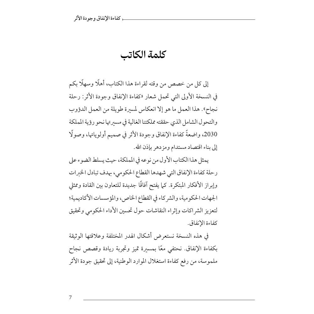 هذا الكتاب ليس دليلًا ماليًا فحسب، بل دعوة لتبنّي ثقافة جديدة في الإدارة والإنفاق، تقوم على الرشد، والتخطيط، والقياس. إنه أداة معرفية لكل من يسعى للمساهمة في تحقيق رؤية تنموية واعية، أساسها أن كل ريال يُصرف… يجب أن يُحدث فرقًا.