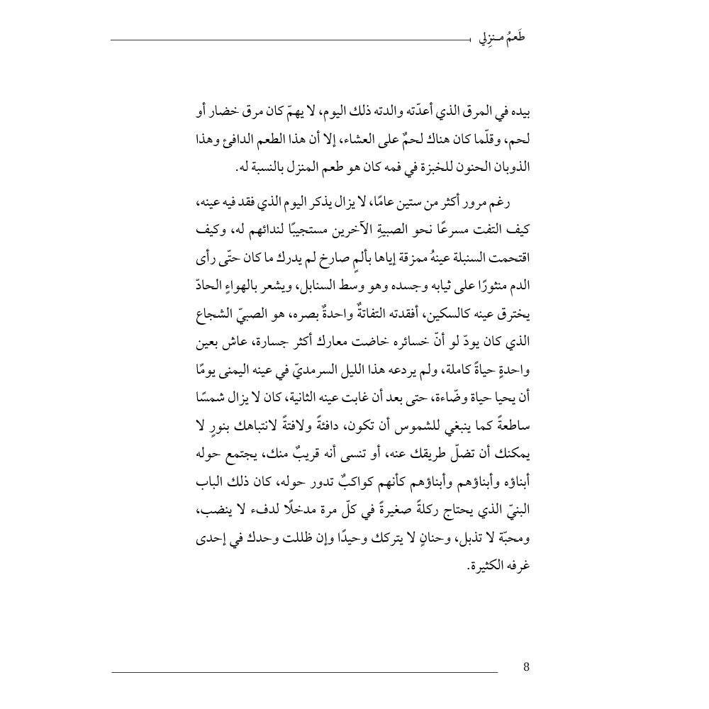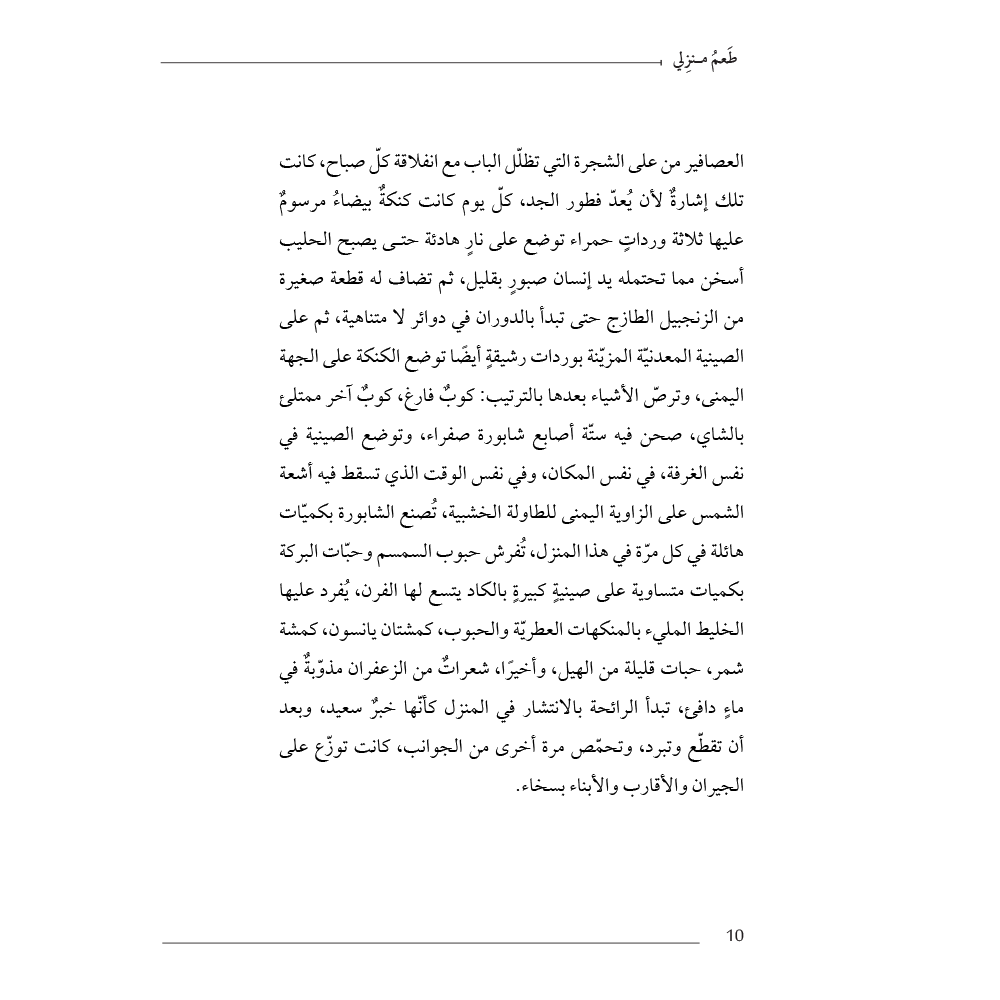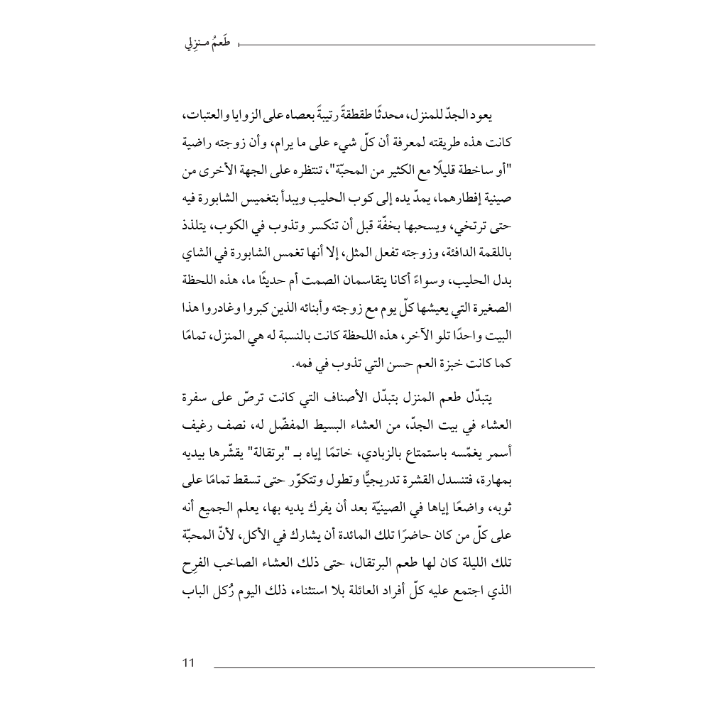 الرواية لا تحكي عن المطبخ فقط، بل عن العائلة، عن الصخب والضحك، عن الغياب الذي يخلف صمتًا طويلًا، وعن الحب الذي يُعاش في أبسط التفاصيل. بأسلوب عاطفي رقيق، تنقل القارئ من دفء الأحاديث اليومية إلى عمق الأسئلة الوجودية: ماذا يبقى من البيت إن غاب أهله؟ وما الذي يجعل الطَعم منزليًا حقًا؟